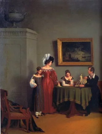 Василий Тропинин - Портрет Дмитрия Петровича Воейкова с дочерью Варварой Дмитриевной Воейковой и англичанкой мисс Сорок